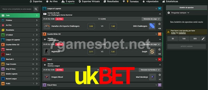 O ukbet oferece uma grande seleção de opções de apostas em e-sports com probabilidades competitivas